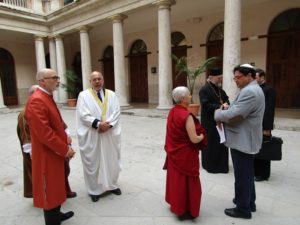 - Algunos de los líderes religiosos en el claustro de la Facultad de Teología