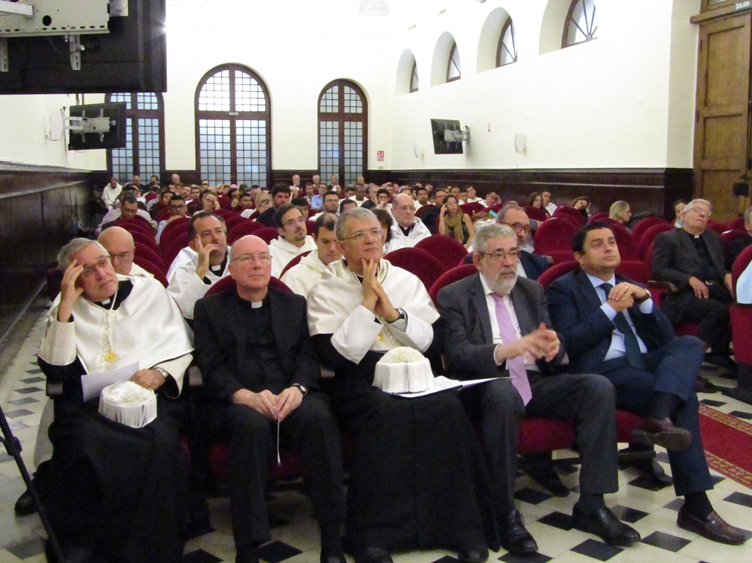 Tras la misa, el claustro profesores, así como los alumnos y personal del PAS que han participado en la Apertura se han desplazado hasta el salón de actos de la sede de la Facultad de Teología valenciana. Han podido asistir a la cita los obispos auxiliares de Valencia, monseñor Esteban Escudero y monseñor Javier Salinas. También han participado el rector de la Universidad Católica de Valencia San Vicente Mártir, José Manuel Pagán, y el rector de la Universidad CEU Cardenal Herrera, Vicente Navarro.