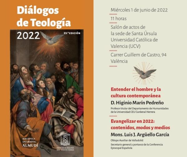 Estos Diálogos de Teología 2022 se desarrollarán el próximo miércoles 1 de junio, a partir de las 11:00 horas, en el salón de actos de la Sede de Santa Úrsula de la Universidad Católica de Valencia (UCV), situado en la C/ Guillem de Castro, nº 94, de Valencia.