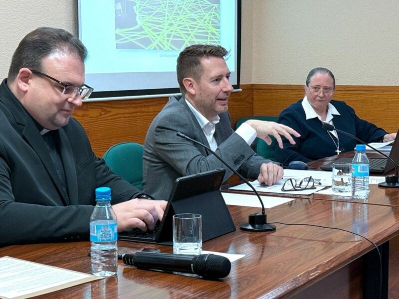 La intervención ofreció una mirada lúcida y esperanzada sobre los desafíos que plantea la cultura digital a la evangelización contemporánea. García Martínez analizó cómo el entorno digital ha transformado nuestra percepción de la realidad, generando una “mirada cenital” que sustituye a la mirada de Dios y reduce la profundidad espiritual del ser humano. Habló también de la pérdida del asombro, de la antropofobia de ciertos movimientos transhumanistas y de cómo el ser humano corre el riesgo de pasar de ser un “hombre de dotes” a un “hombre de datos”.