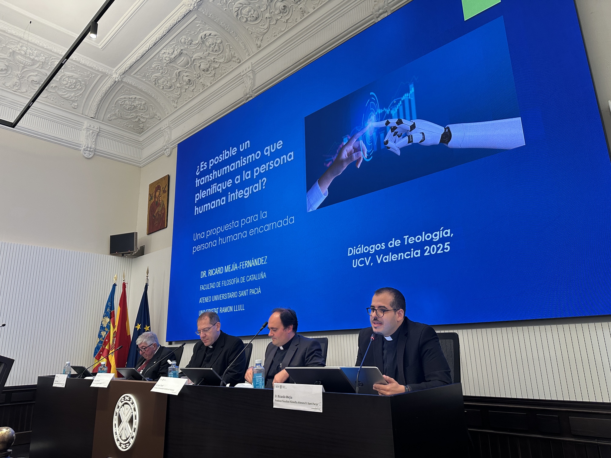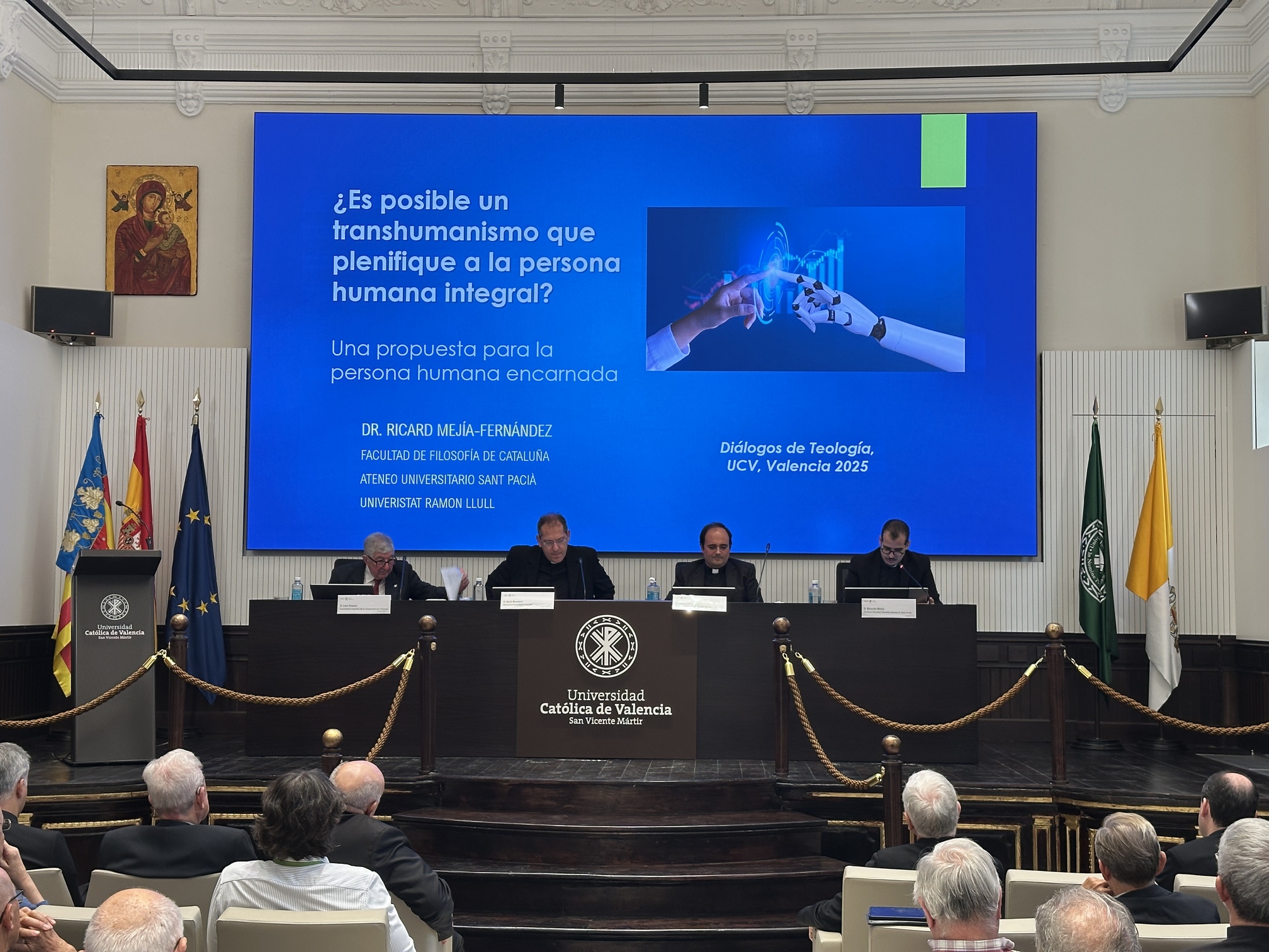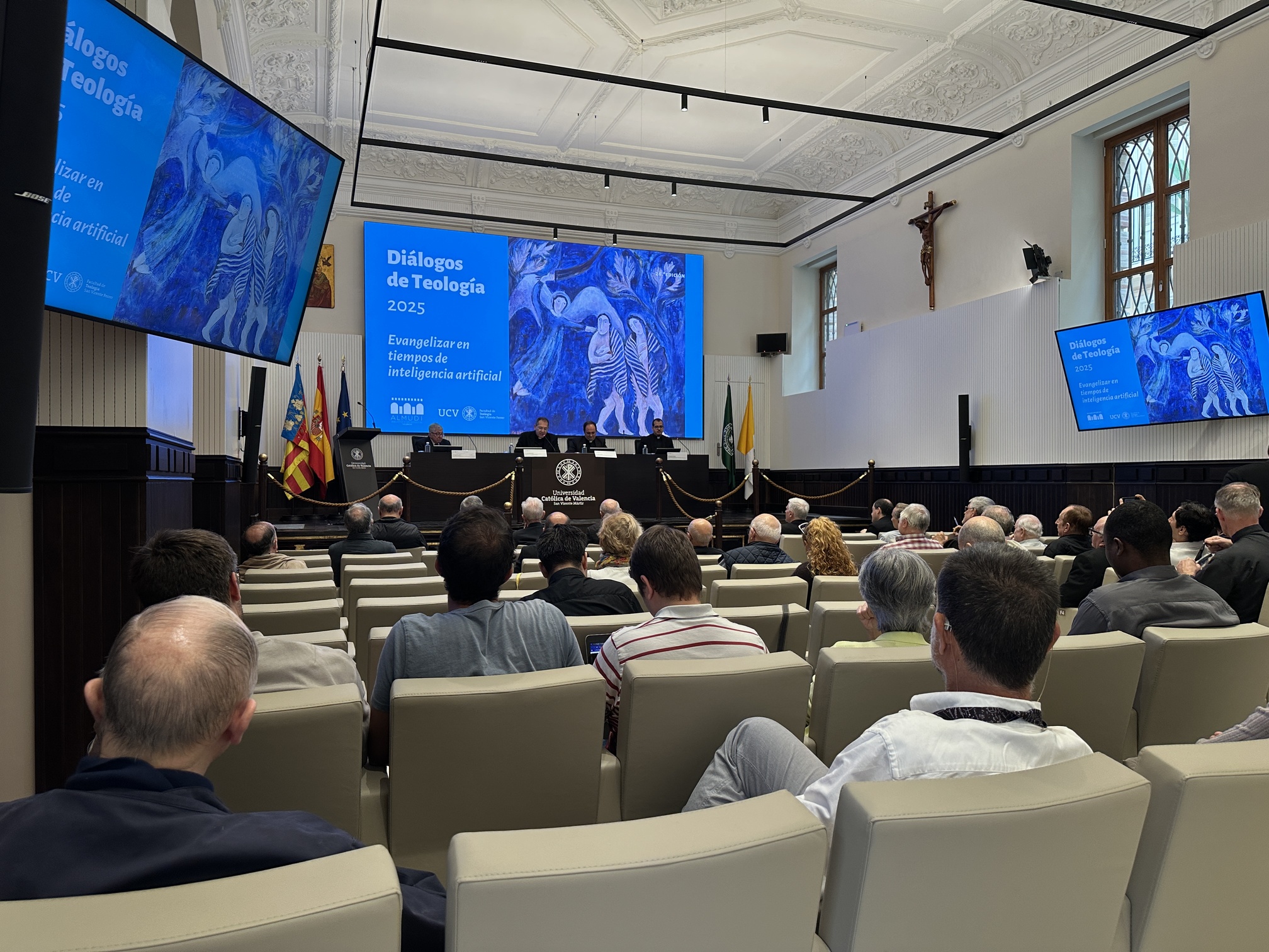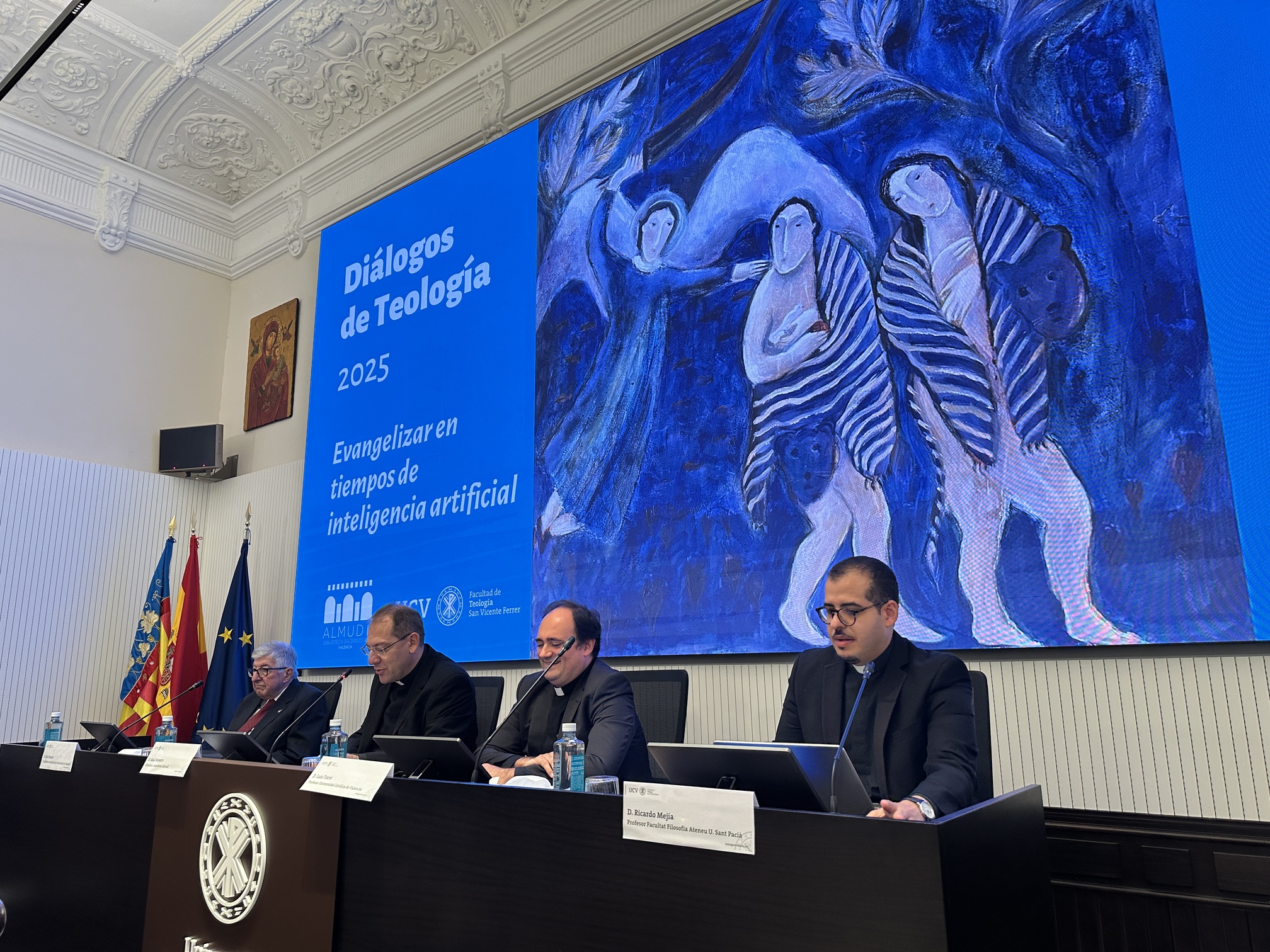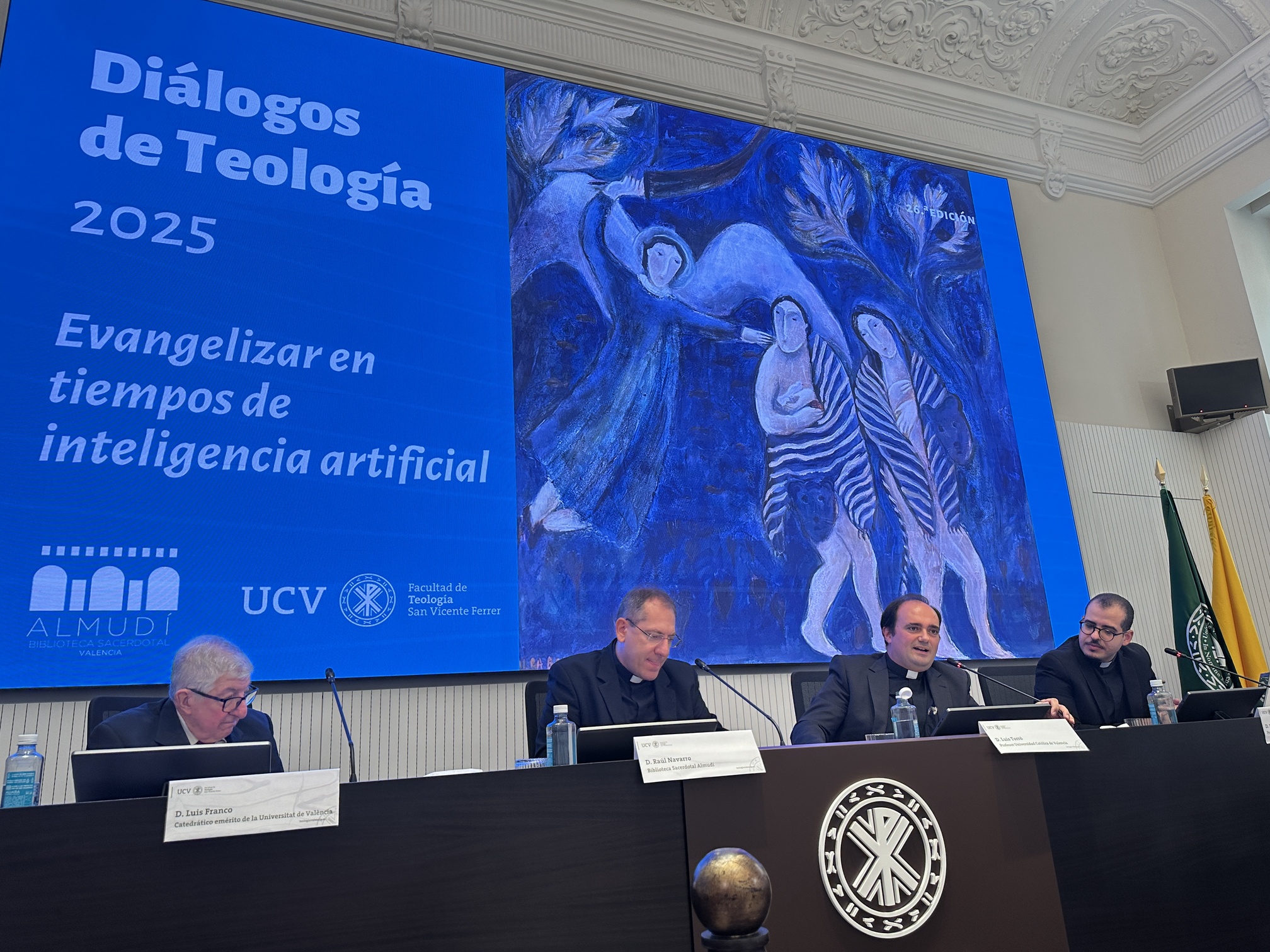Evangelizar en tiempos de inteligencia artificial fue la temática sobre la que versó la 26 edición de los Diálogos de Teología que organizan anualmente la Biblioteca Sacerdotal Almudí y la Facultad de Teología San Vicente Ferrer de la Universidad Católica de Valencia (UCV). Entre los asistentes estuvo el arzobispo de Valencia, Mons. Enrique Benavent; el obispo auxiliar de Valencia Mons. Arturo García; el obispo emérito de Valencia, Mons. Javier Salinas; el vicario del Opus Dei en Valencia para Aragón y Levante, Jaime Abascal; el director de la Biblioteca Sacerdotal Almudí, Antonio Carmona; y el decano de la Facultad de Teología San Vicente Ferrer de la UCV, Santiago Pons.