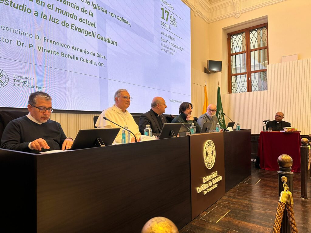 El sacerdote brasileño Francisco Arcanjo da Silva se convirtió este 17 de diciembre de 2025 en nuevo doctor en Sagrada Teología por la Facultad de Teología San Vicente Ferrer-UCV tras superar la defensa de su tesis doctoral titulada El anuncio kerygmático de la Iglesia «en salida», fundamento y relevancia de la fe cristiana en el mundo actual. Un estudio a la luz de Evangelii Gaudium. Para conferir el título de doctor es necesaria la publicación de la tesis, de forma completa, o de un extracto de la misma.
