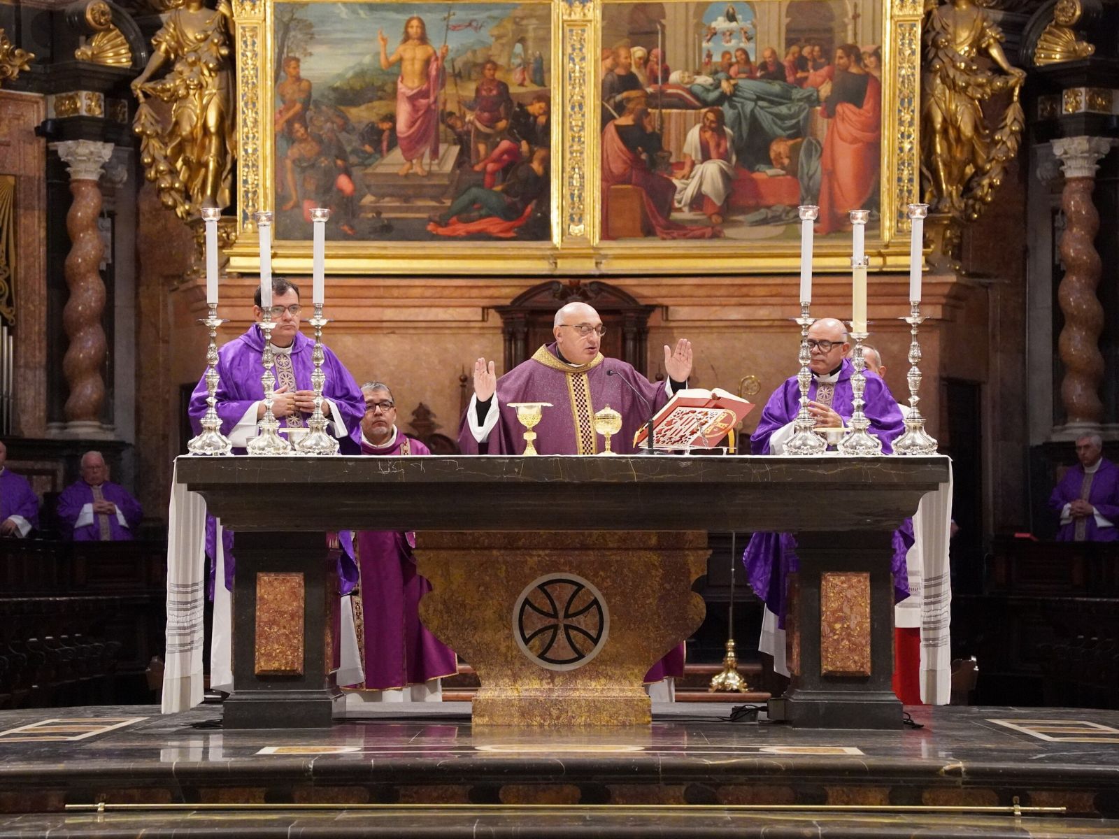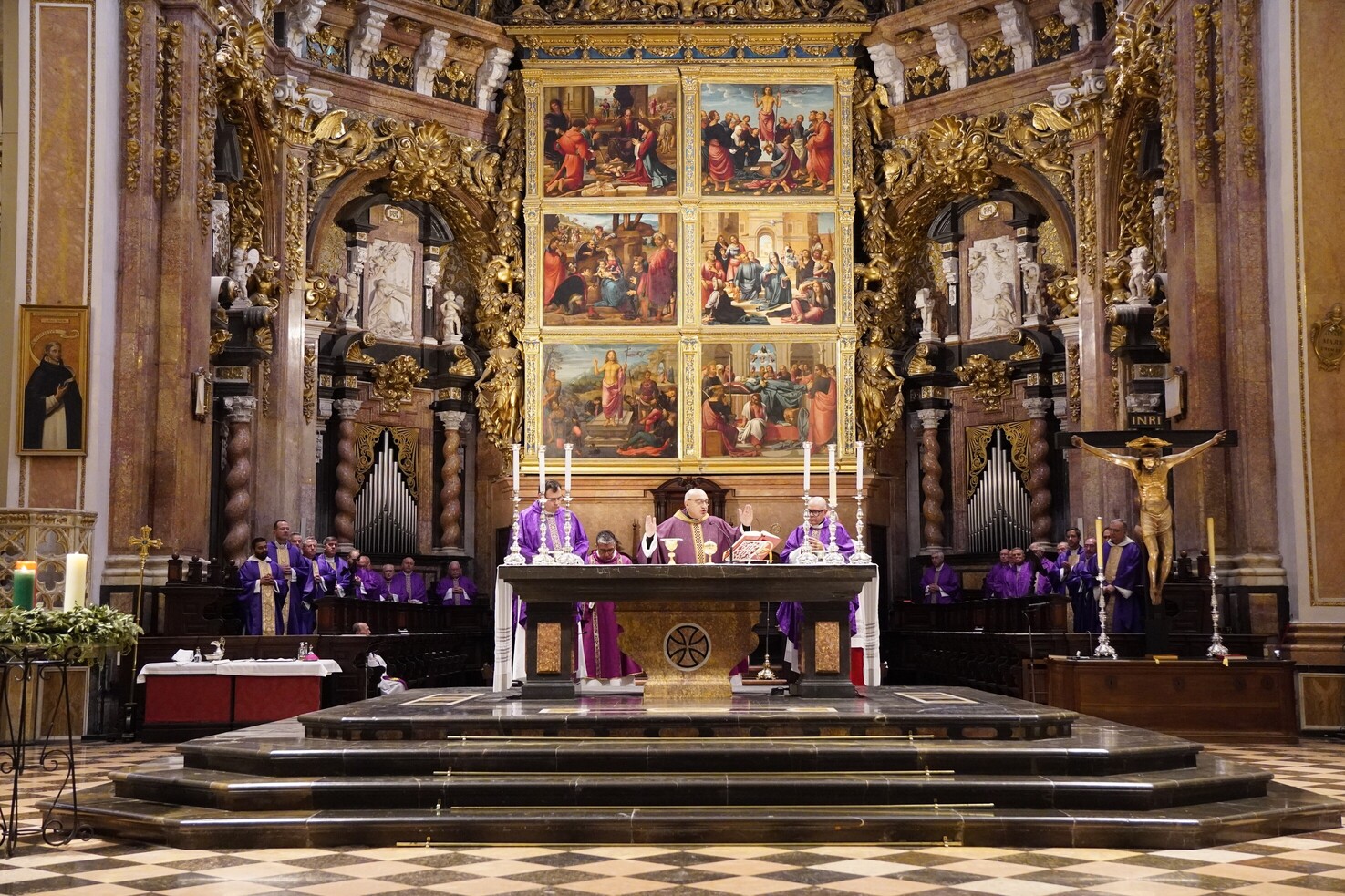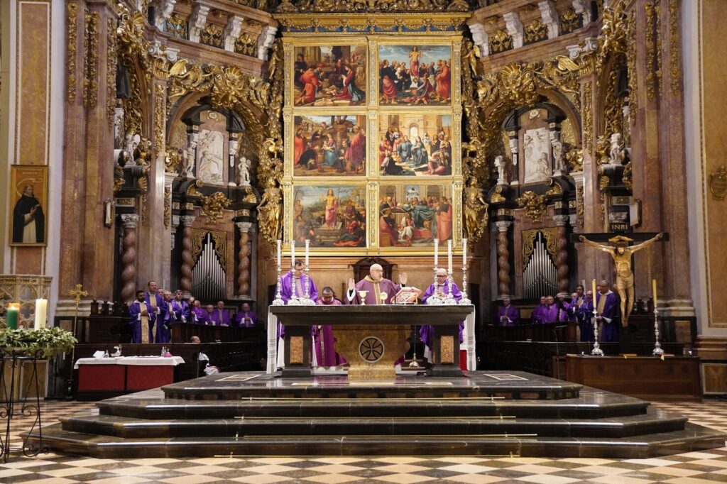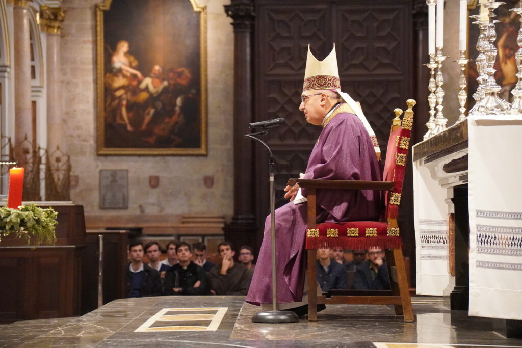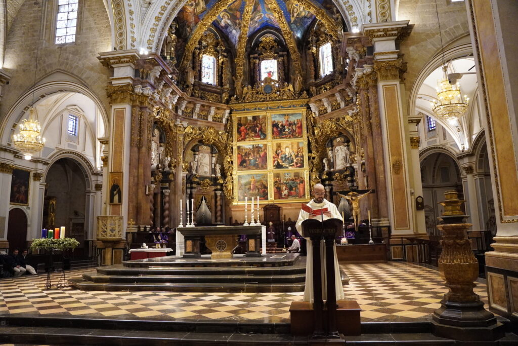 La jornada se abrió con una eucaristía presidida por el arzobispo de Valencia, Mons. Enrique Benavent, gran canciller también de la Facultad, en la Santa Iglesia Catedral. En la celebración participaron los miembros de la comunidad académica, profesores, alumnos y miembros del personal de administración y servicio. Esta misa fue compartida con la comunidad de la Facultad de Derecho Canónico de la UCV, con la curia de la Archidiócesis de Valencia y con los canónigos de la Seo valenciana.