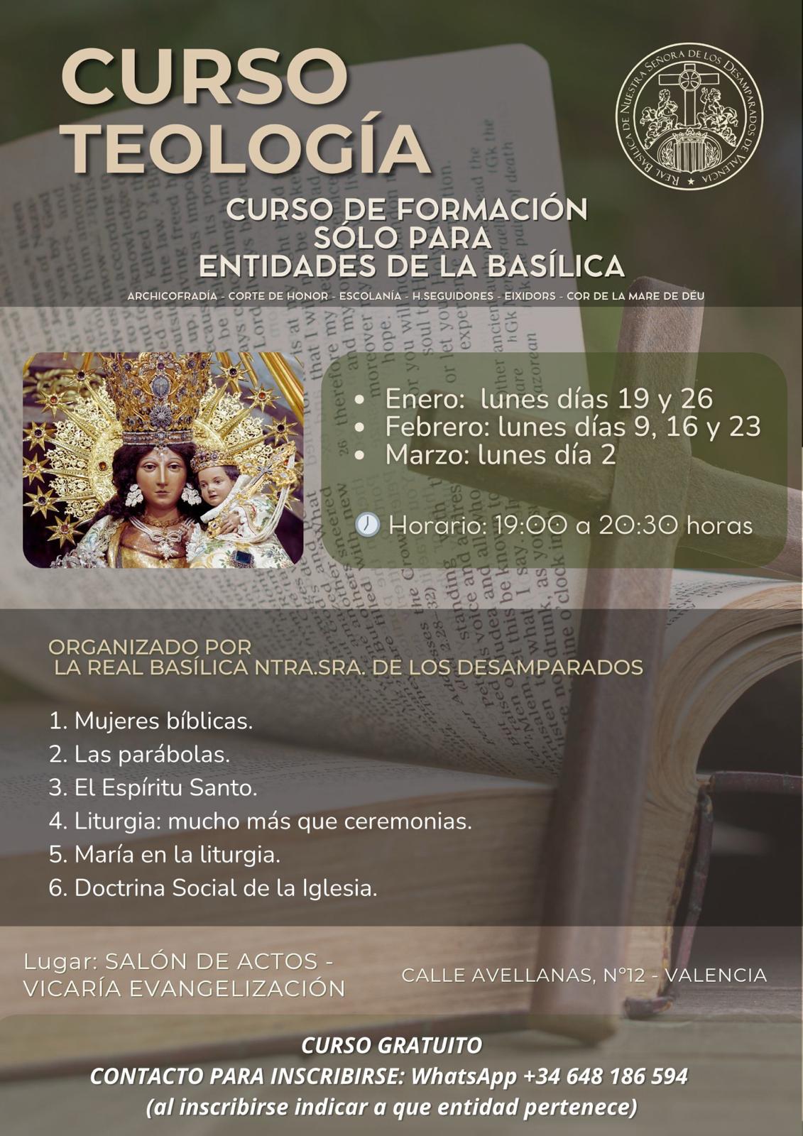Cinco profesores de la Facultad de Teología San Vicente Ferrer de Valencia participan en el ciclo de conferencias que ha organizado la Real Basílica de la Virgen de los Desamparados y el Instituto Diocesano de Ciencias Religiosas (IDCR). Se trata de una formación teológica destinada a miembros de entidades del templo, la Archicofradía de la Virgen, la Corte de Honor, la Escolanía, los Seguidores de la Virgen, els Eixidors y el Cor de la Mare de Déu.