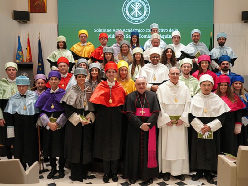 La Universidad Católica de Valencia (UCV) ha conmemorado la festividad de Santo Tomás de Aquino -patrón de las escuelas católicas, de las universidades y de la educación- en la histórica sede de la calle Trinitarios mediante la celebración de la eucaristía y el acto académico tradicional presididos por el arzobispo de Valencia, Mons. Enrique Benavent, gran canciller de la universidad. En su intervención en el acto, Benavent ha asegurado que “una universidad católica posee una exigencia, como cualquier otra, pero también un espíritu propio, una manera de hacer las cosas, un modo de afrontar la investigación que no elude las cuestiones éticas y antropológicas”.