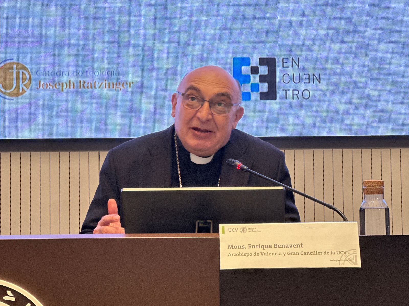 En el acto ha participado Mons. Enrique Benavent, arzobispo de Valencia y gran canciller de la UCV, quien ha ensalzado con firmeza lo que Ratzinger representó para la Iglesia: “Era un hombre que no se sometía a estereotipos, no había nada de ideología en su comprensión de la fe, en su manera de presentarla. Era su ser creyente, su entendimiento de la fe, lo que determinaba su manera de pensar; así que toda utilización ideológica que quiera hacerse de sus palabras lo único que consigue es empobrecer su pensamiento y su figura”.