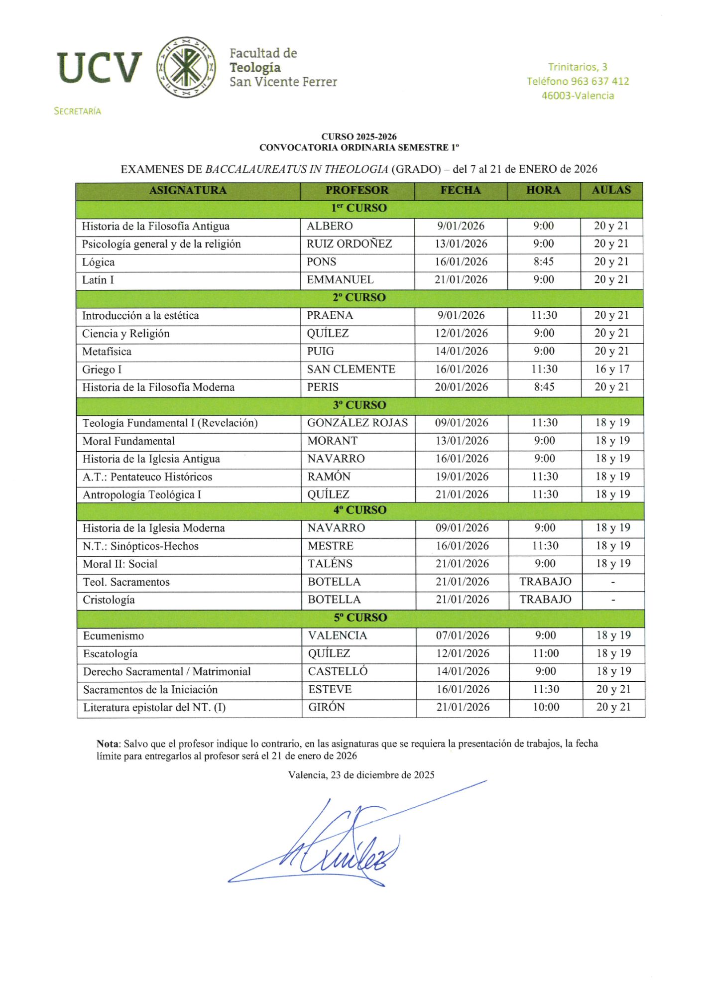 DESCARGAR EL CALENDARIO DE EXÁMENES
