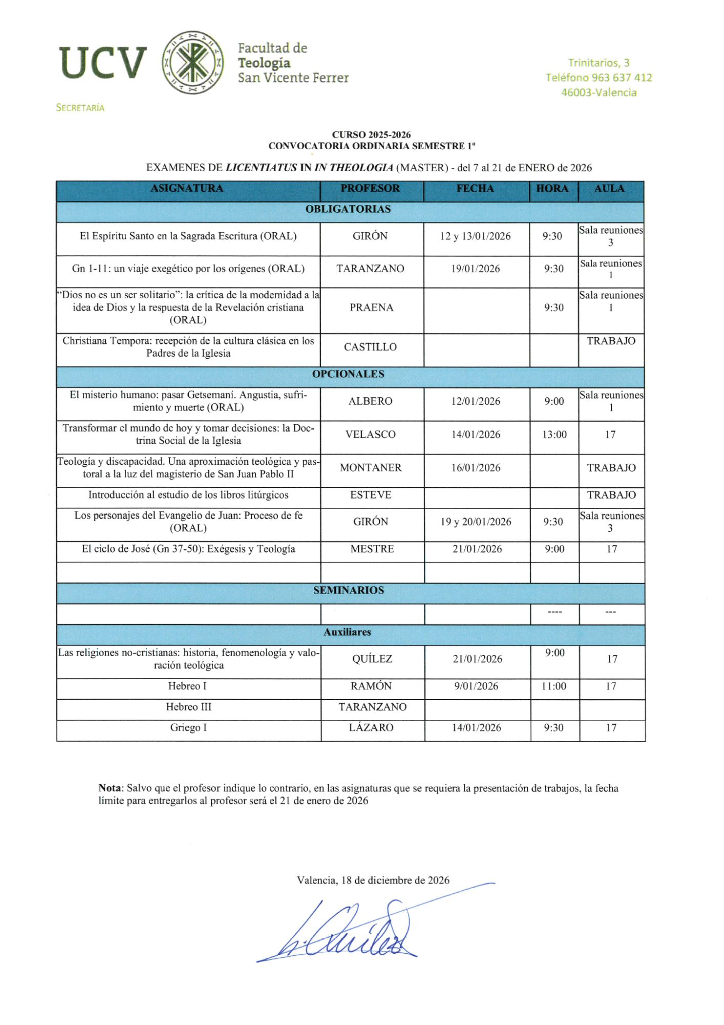 EXÁMENES DE LICENCIATURA EN TEOLOGÍA