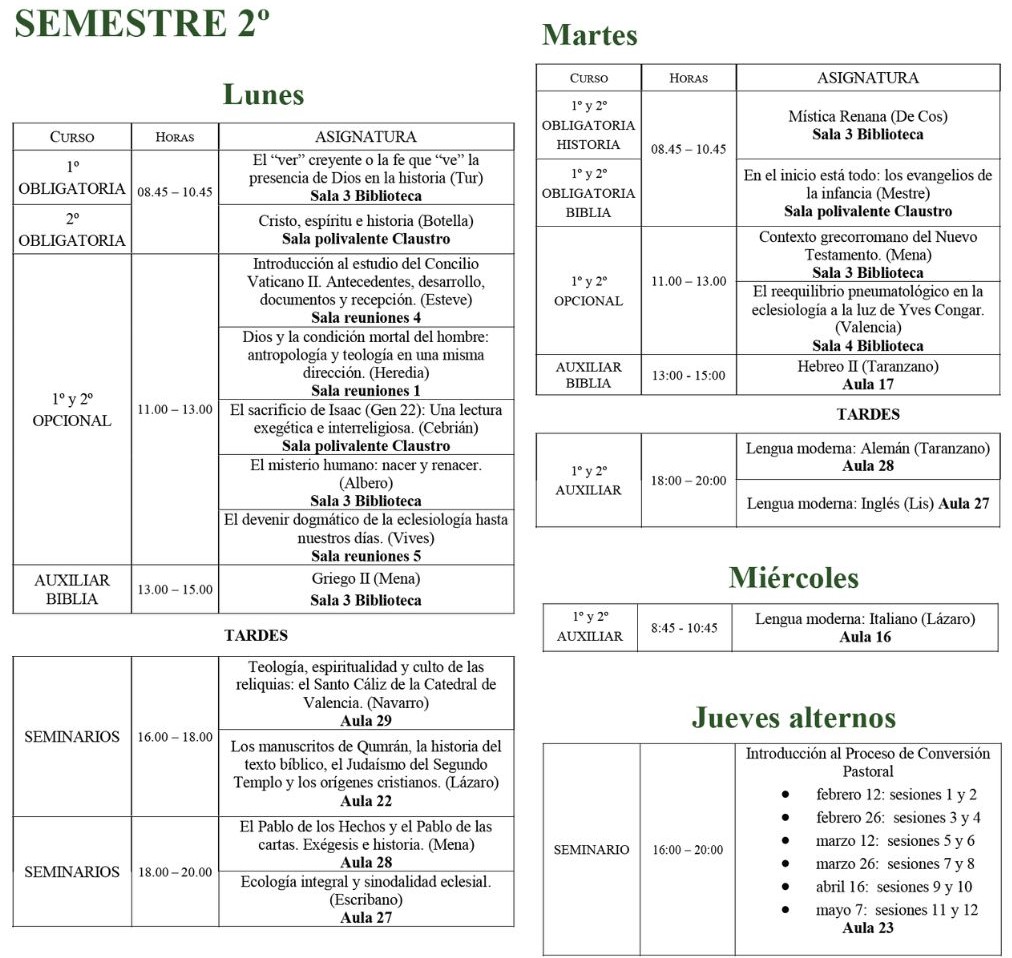 Imagen horarios Licenciatura 2025-2026 Semestre 2 – 1